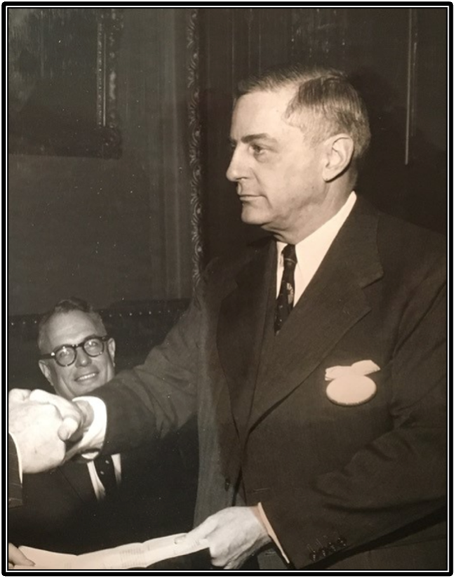 The photograph above shows G. Keith Funston, President of the New York Stock Exchange (NYSE), looking on as Gordon Wasson receives an award.
