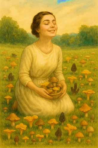 She knelt before those toadstools in poses of adoration like the Virgin hearkening to the Angel of the Annunciation. She began gathering some of the fungi in her apron. I called to her: “Come back, come back to me! They are poisonous, putrid. They are toadstools. Come back to me!” She only laughed the more: her merry laughter will ring forever in my ears.