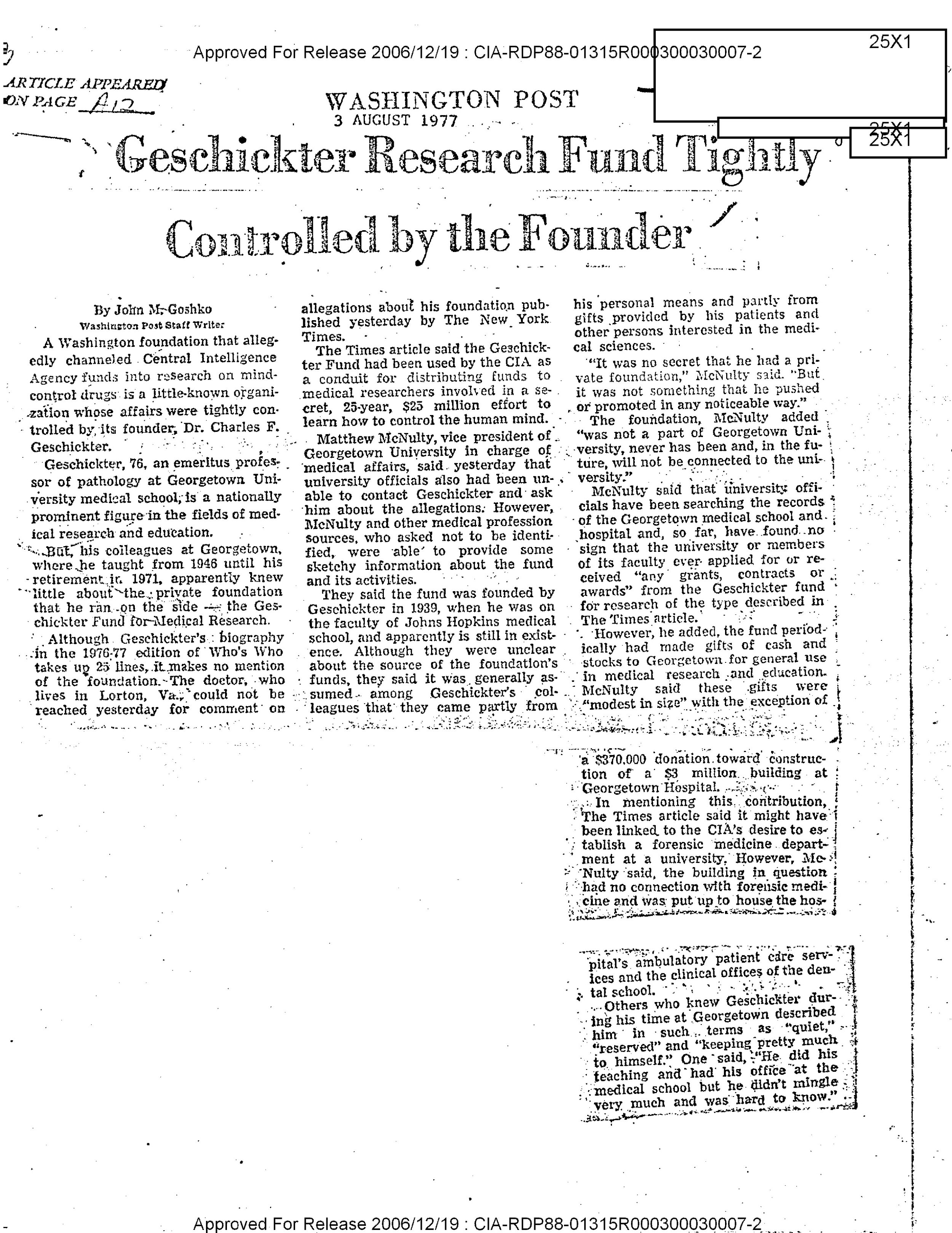 Although CIA archives suggest that the Wassons were unwitting participants in its Opportunistic schemes, the CIA’s Geschickter Fund was cited for its support of Gordon Wasson’s 1957 article Seeking the Magic Mushroom, published in Life Magazine. This places Gordon Wasson in company with numerous colleges and universities, free-lance contractors, and both U.S. and foreign government personnel who received Geschickter Funds.