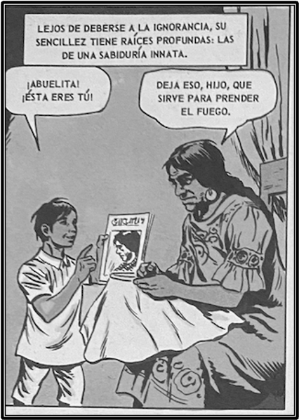 The unintended cross-cultural consequences of the Wassons’ Magic Mushroom publicity were suffered by the Mazatec in Huautla. Although Maria Sabina became a cultural icon in Mexico and beyond, locally she was an outcast blamed for the hippie invasion. (Maria Sabina Y Los Hongos Alucinantes; Libro Comic, Organizacion Editorial Novaro, SA Mexico DF 1975. An illustration makes that point clear.