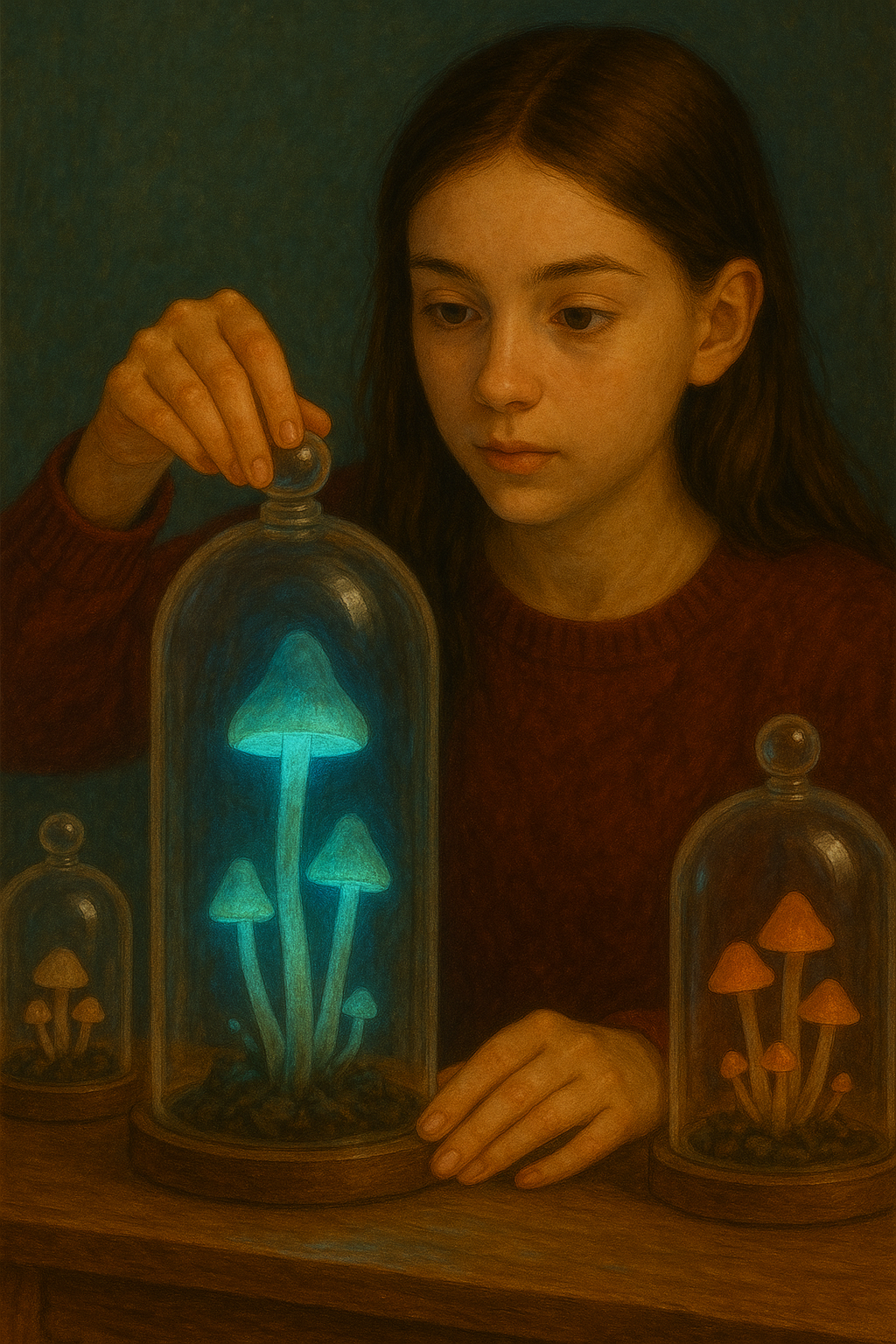 When she turned the corner and found herself all alone in front of the magical mushroom garden, she stopped for a second, just long enough to slow her hasty approach to a cautious, almost reverent one.